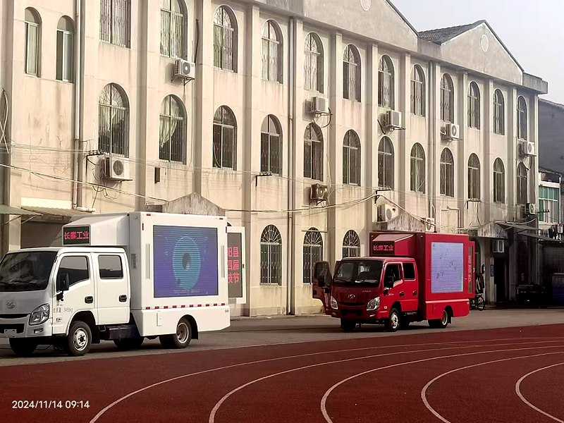 活動(dòng)現(xiàn)場,湖南長泰工業(yè)科技有限公司的宣傳車成為一大亮點(diǎn)。宣傳車不僅外觀醒目,內(nèi)部更是配備了發(fā)電機(jī)、機(jī)柜、液壓系統(tǒng)、多彩顯示屏等一系列先進(jìn)設(shè)備,確保在宣傳過程中能夠安全、高效地進(jìn)行。